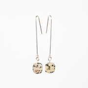 Flat Dalmatian Jasper beads dangle from a Sterling Silver ear wire.