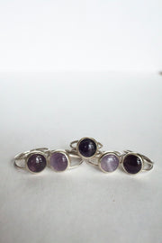 A perfect way to add a little color into your everyday. These amethyst rings exist in a range of purples and sit on a double sterling silver band.