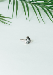 Faceted dendritic agate set in sterling silver. Wire band for comfortable wear.
