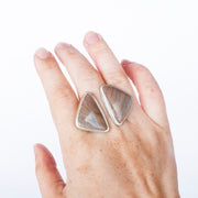 This open ring features a pair of Polychrome Jasper stones in perfect harmony and balance together. Set on a half round wire, the sturdy band is comfortable to wear.