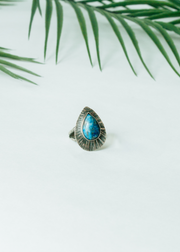 Lapis lazuli stone ring with hammered texture and patina finish.